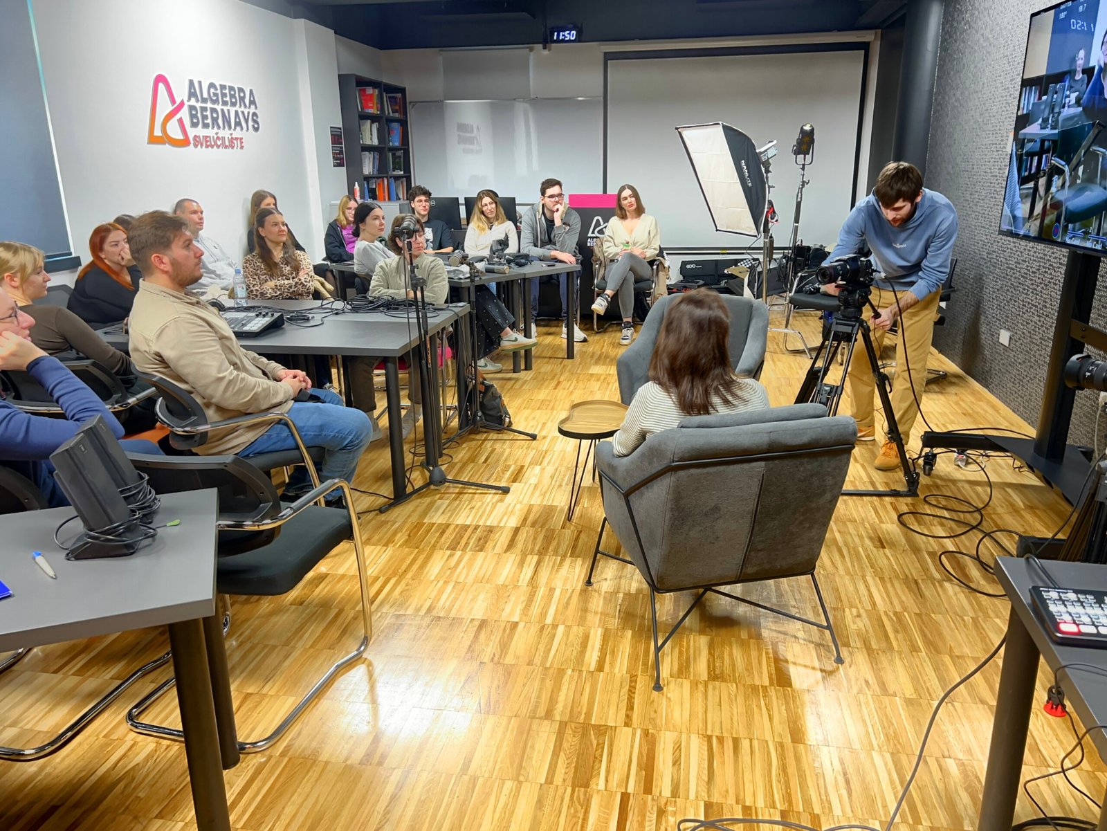 U subotu 25. listopada 2025. učionica Marije Braut na Sveučilištu Algebra Bernays pretvorila se u mali produkcijski studio. Telecentar i Algebra Bernays organizirali su radionicu audiovizualne produkcije podcasta za studente, srednjoškolce, njihove nastavnike i mlade autore uključene u programe digitalne kreativnosti. Dvadeset i šest sudionika provelo je dan učeći kako ispričati priču kroz zvuk i sliku, od prvog govora u mikrofon do završnog videa koji dokumentira sam događaj.